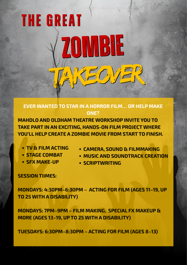 Mahdlo and Oldham Theatre Workshop invite you to take part in an exciting, hands-on film project where you’ll help create a zombie movie from start to finish.